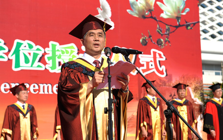 校長李家俊在2014屆研究生畢業典禮上講話 親愛的同學們: 今天我們在這裡舉行隆重的儀式,為369位博士、1909位碩士授予學位。在此,我代表學校,向所有獲得學位的博士、碩士畢業生表示熱烈的祝賀!並通過你們向支持你們完成學業的家人、親友表示衷心的感謝! 你們手中的証書是沉甸甸的,這其中凝…[詳細]