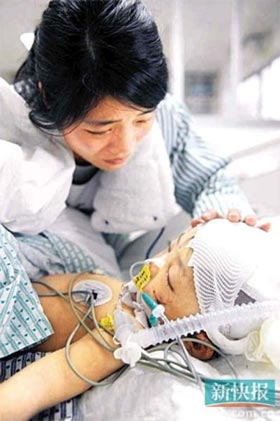 自從小麗佳被送進ICU后,小麗佳的父母已經足足在病房外面守了七天,一想到女兒險惡的處境,母親的眼淚就止不住地往下滴。她哭著說:“眼淚都哭干了,就希望她能睜開眼看看我……”