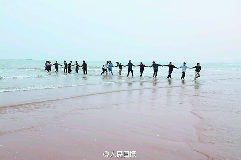 從深海到沙灘,這條“生命鏈”有三四十米長。章瀟龍排在第五個,海水在他胸膛處拍打著,刺骨的冷侵入全身每一處。和冷比起來,其實更多的是怕。“李鎮豆和史哲在海水深處,不能不管他們。”大家心裡就這一個念頭。手很濕,很滑,用力地握著才不會鬆開……每一個人,就那樣使勁地握著、握著……