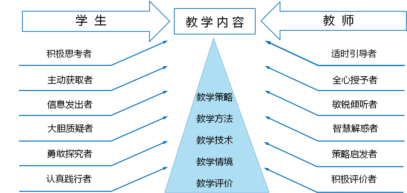 2009年以來,我校一直以“一心三通五還給”的教學理念打造自主開放的課堂教學文化。“一心”即培養學生的健康主動發展的意識和創新精神。“三通”即書本知識與人類生活世界的溝通﹔書本知識與學生經驗世界、成長需要的溝通﹔書本知識與發現、發展知識的人和歷史的溝通。“五還給”即還學生主動學習的時間﹔還學生主動學習的空間﹔還學生主動學習的工具﹔還學生主動學習的提問權﹔還學生主動學習的評議權。
