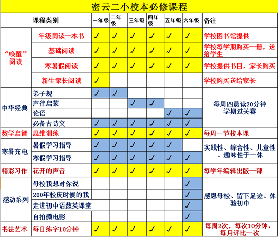 校本必修課程,作為國家課程和地方課程的補充,本著面向全體學生、致力於學生的全面發展的目標開展。目前多彩校本課程之必修課程如下: