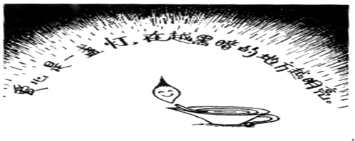 下面的圖畫注解了愛的真正含義,它強調了愛心是情感的力量,不論我們周圍的世界多麼黑暗,愛心都能支撐我們。事實上,歷史上處於不同文化中的人們都把愛當作人類最高尚的情感。
