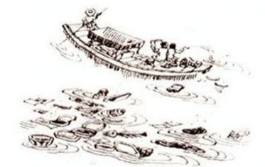 As is subtly portrayed in the cartoon, two tourists are taking sightseeing on a small boat while discarding their picnic leftovers casually into a lake. And below the drawing, there is a topic which says: "after" the travel or "me" in the travel.