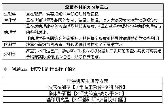 如果說不考研也能找到工作的話,放在其他專業是具有可能性的,但學醫的同學都知道,如果不進一步深造的話,想進醫院、科研院所實在是太難了。3年醫師規范化培訓制度已經實施,對於醫學生的你來說,考研的人生性價比又進一步提高。但考研西醫綜合是比較復雜的,很多同學在報考之前是比較迷茫的,為了消除大家的疑慮,下面,為大家整理了若干表格,讓考研西醫綜合一目了然。