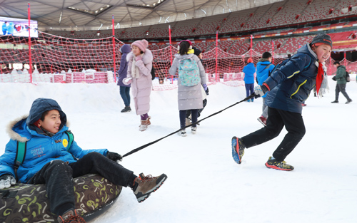 北京東城區部分中小學校的學生2000余名參加了儀式,並參與了現場拔河比賽、拉雪圈比賽、雪地足球賽、冰壺體驗、奧運大講堂等體驗活動。