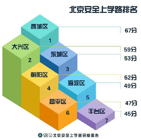 人民網北京12月21日電 (記者 郝孟佳)昨日,《2018路見·北京安全上學路民意數據報告》在京發布。報告顯示,北京市各區上學路安全性指數由高至底依次為:西城區、大興區、東城區、朝陽區、海澱區、昌平區、豐台區。