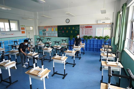 考慮到實際情況,北京教育學院附屬豐台實驗學校設計了戴口罩的“專門方案”。該校校長郝玉偉介紹,學校每上40分鐘課,學生可走到戶外摘下口罩透氣﹔在操場上劃定了每個班級相對固定的活動區域,不戴口罩進行活動也盡量減少人員聚集和交叉﹔即便在教室內,如有學生戴口罩感到呼吸不暢,也可到教室后方的窗戶處摘掉口罩透透氣。