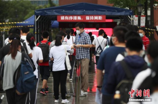 資料圖:2020年7月6日,江蘇南京一處考點,高考考生看完考場后走出考點。 中新社記者 泱波 攝