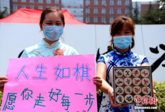 資料圖:2020年7月河南鄭州一高考考點,考生家長送考 中新社記者 王中舉 攝