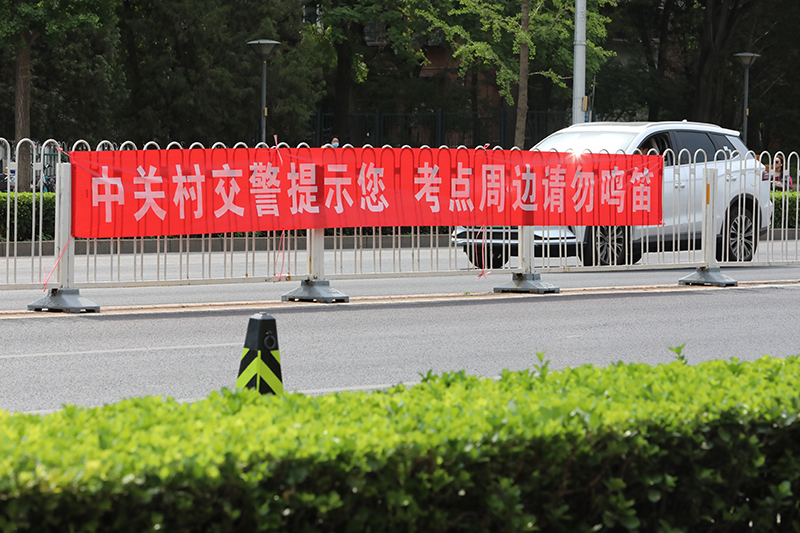 考場周邊拉起了橫幅,提醒來往車輛不要鳴笛。人民網 尹星雲攝