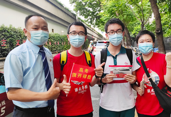 廣州愛心送考出租車司機朱敬懷接載考生順利抵達廣東省廣雅中學考點。來源: 廣州市交通運輸局、廣州市公交集團白雲(廣交)公司