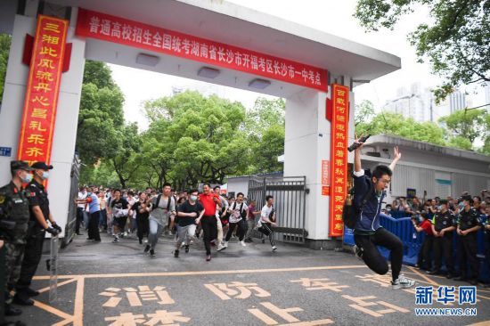 6月9日,考生在考試結束后跑出湖南省長沙市一中考點。
