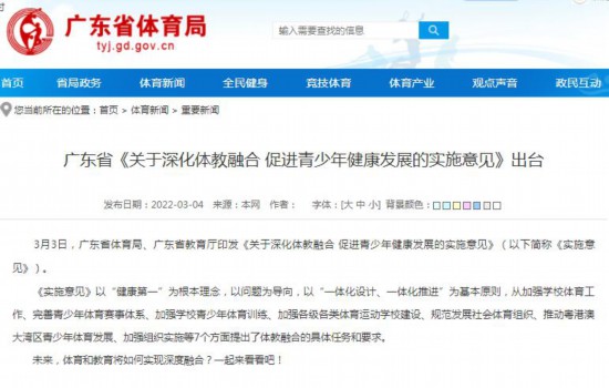 廣東省體育局副局長林瑛表示,早在2020年年底,體育和教育部門就聯合啟動了《意見》的編寫工作,經過12次研討會、專家組深入調研論証和向社會廣泛征求意見后最終成文。