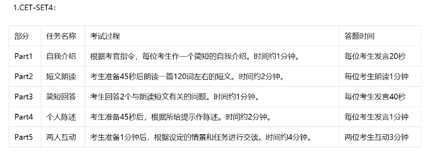 全國大學英語四級口語考試流程。截圖來源:中國教育考試網