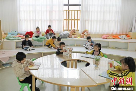 武勝縣東方紅幼兒園的閱讀角。 夏俊林 攝