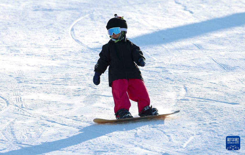 12月21日,一名小朋友在河北省石家庄市鹿泉區冰雪小鎮滑雪。