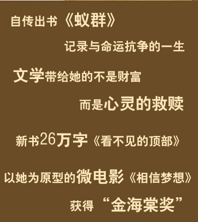 面对生活的苦难,女人没有逃避,她在写作中获得重生今年3月,她的18万字自传小说《蚁群》出版,主人公的顽强征服了万千读者的心,“葱油饼大姐”的名字不胫而走。 。