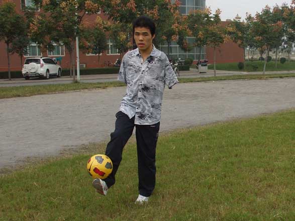 大学生活让吴建平彻底从失去双臂的阴影里走了出来,人也变得非常乐观、阳光、积极向上。他有一帮非常要好的朋友,平时在一起喝酒、聊天、踢球。两年前吴建平还遇到了生命中的那个“她”,提起女友吴建平充满感激,“真心谢谢我的女友,为我付出那么多,给我鼓励。我没有任何理由懈怠,我必须勇往直前,不后退、不放弃。”