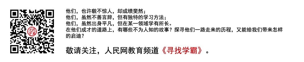 如果你身边也有心存梦想,勇于坚持,并在某方面有所建树的学霸,那么请推荐给我们! 电话:010-65367970 邮箱:zhaoyingzi@people.cn