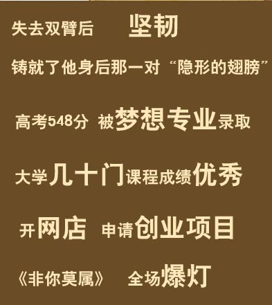这个来自河南乡下的25岁无臂少年,没有靠不幸博取世人同情,而是用超乎年龄的坚强与乐观,带给大家无限惊喜。