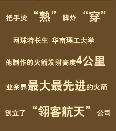 今年毕业后胡振宇注册成立了“翎客航天”公司,这是国内首家提供探空火箭发射服务的私人企业。胡振宇这一次的“意气用事”,无意间成了国内民间资本进入航天业的“革命”;也是这一次的“意气用事”,他完成了从“炸弹少年”到“执行董事”的华丽转身。