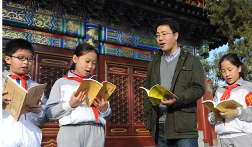 “论语者,二十篇,群弟子,论善言。”11月23日,北京北长街小学,学生们在中国人民大学文学院副教授朱子辉的带领下,通过学习《三字经》等,了解国学经典。 日前,西城区西长安街街道“国学进校园活动”正式启动,邀请高校文学教授为辖区内在校中小学生讲授国学课程。 街道还计划明年开展“国学进社区”“国…[详细]