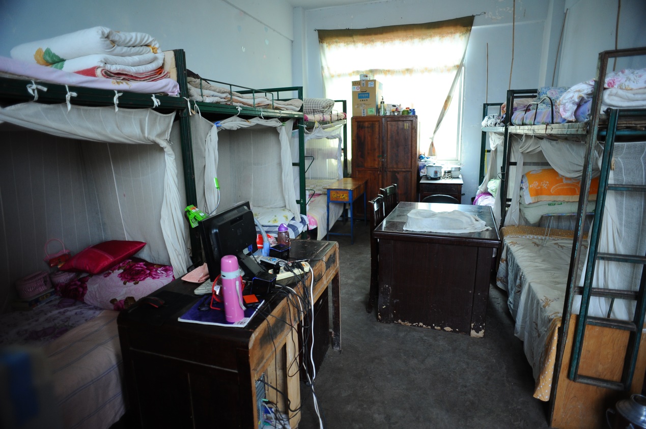 在盐源县我们看到四十多平米的教室拥挤着141名学生;在普格县了解到民族中学没有教师宿舍,七八个教师象学生一样挤在一间十几平米的宿舍里,同一学校双职工的教师长年分居。