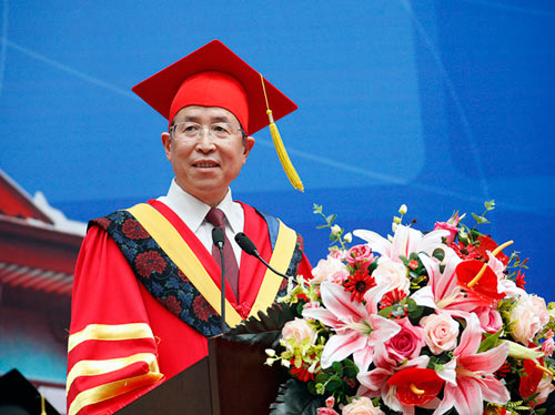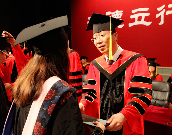 你们不同于本科生,他们刚结束了大学四年的生活,还不太成熟,需要继续培养,走向社会以后还需要多加历练;而你们历经了本科生,又经历了研究生阶段,有很多人还有工作的经历,因此你们应该知道什么是担当,什么是责任。你们有自己的家庭,你们应该对家庭负责;你们有工作单位,应该对这份事业负责;你们身处中国大地上,应该对国家负责,因为你们是交大的学子,是交大的硕士博士,你们应该有这份担当。