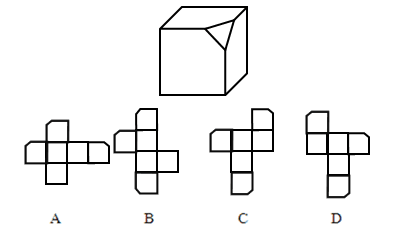 【題目】下邊給定的是一個削掉角的紙盒,下邊哪一項不是由它展開而成?