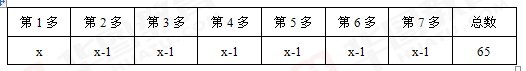 依据上表可列出方程,x+6×(x-1)=65,解得x=10.1。最少为10.1人,取整为11人。因此,本题的正确答案为B选项。