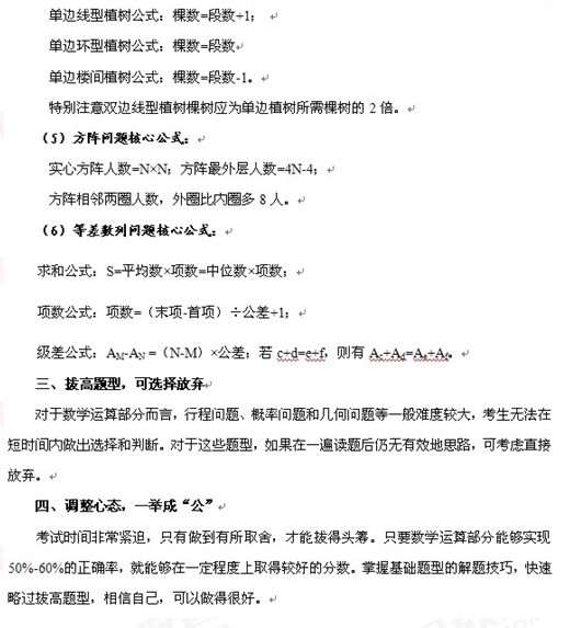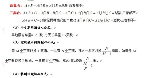5.公式法:容斥问题、牛吃草问题、空瓶换水问题、植树方阵问题、等差数列问题等。
