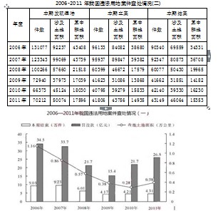 D.2006年立案涉及的土地面积略小于2010年与2011年立案涉及土地面积之和