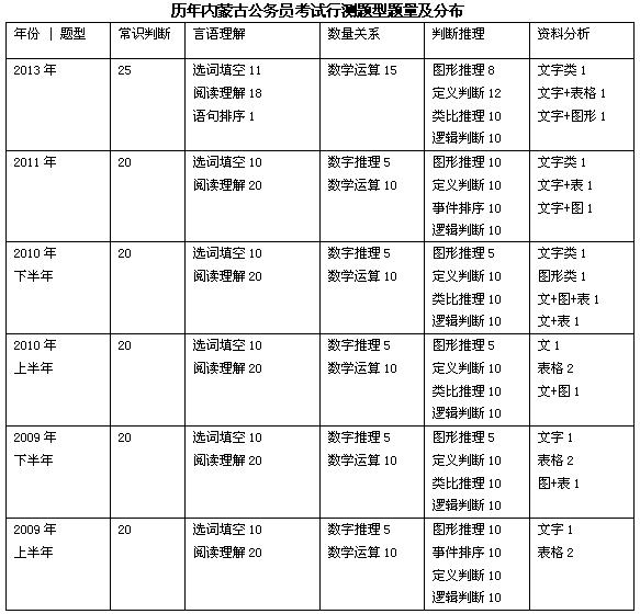又一年的内蒙古公务员考试开始了,正在准备迎战的考生们不知道你们是否已经对内蒙历年公务员考试的考情做到充分了解,下面就09-13年内蒙省考不同时间的题型、题量、考试特点进行总结,以便考生能有针对性的复习。