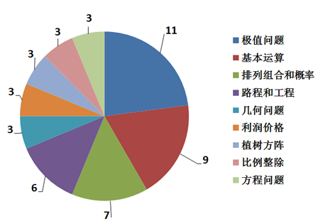 由上图可以看出:考查的重点集中在极值问题(出现了11次)、基本运算(不等式、余数、倍数等基础的运算知识;出现了9次)、排列组合和概率(出现了7次)、路程和工程(出现了6次);并且考试兼顾考查题型的基础知识、解题的实战技巧、简单的分析推理能力,整体难度逐步加大,题目都需要分析推理才能得到答案。