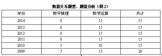 二是数学运算所占比重较大。以上表的数据,除2010年外,其余年份都是15道题,因而我们判断2015年数学运算15道题的可能性很大。