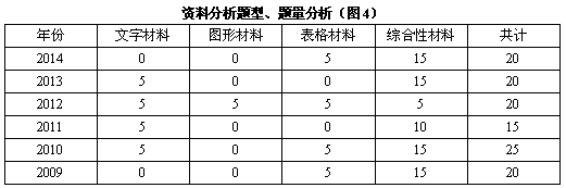 根据近六年资料分析考查内容的统计分析可知,综合性材料题试题总量中占有绝对的优势,是考查的重点,考生需要重点关注。另外,资料分析的考查趋于多样化,材料多变,考生应掌握必要的图、表阅读技巧。
