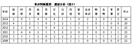 (二)考查学科的涵盖更为广泛。根据对近年国考行测试题的分析,2009年开始,常识判断改变了原来单纯考查法律知识的模式,趋向于多元化命题,更加注重对综合素质与能力的考查。