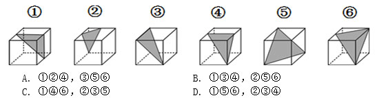 (1)观察六个图形,每一个图形均为一个立方体中含有一个阴影三角形,那再根据此题的类型“图形的分组”可知此题的关键在于找出几个三角形的特点;