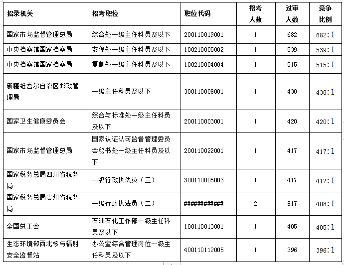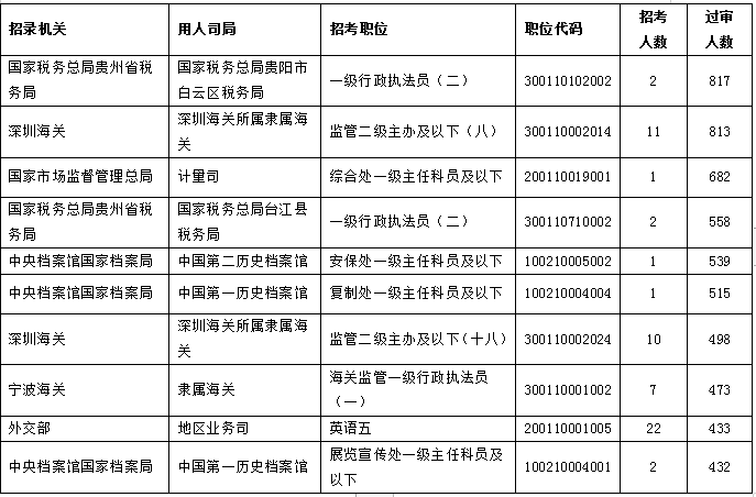 2020国考报名过审人数最多前十职位【截至18日9时】