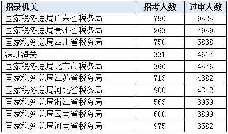 2020国考报名过审人数最多前十部门【截至18日9时】