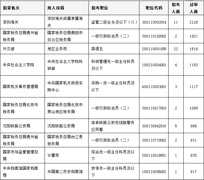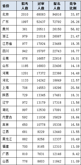 2020国考报名过审人数最多前十职位[截至21日9时]