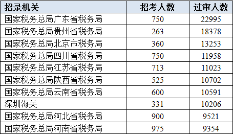 2020国考报名过审人数最多前十部门[截至21日9时]