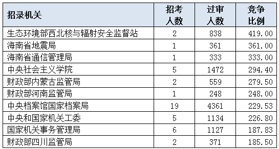 2020国考报名竞争比最激烈前十部门[截至21日9时]