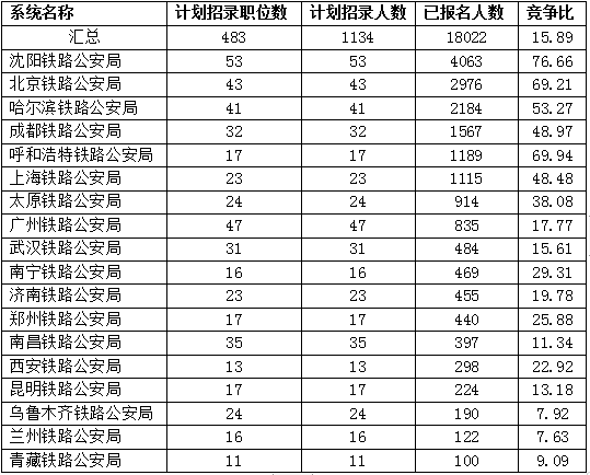 (一)铁路公安系统各招考部门的报考情况