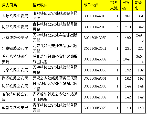 (二)铁路公安系统竞争报名人数最多的十大岗位