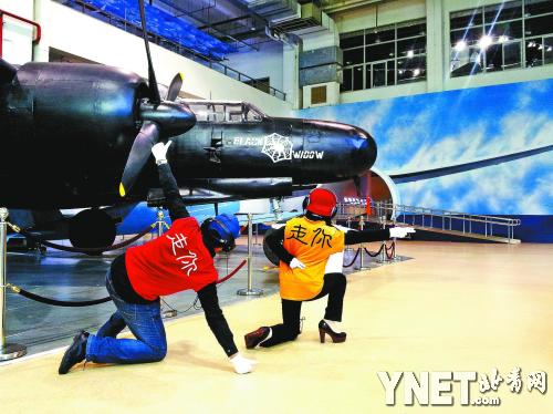 ■北航学生在北航航天博物馆内的“黑寡妇”飞机前摆出“航母STYLE”