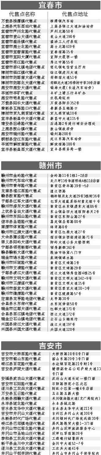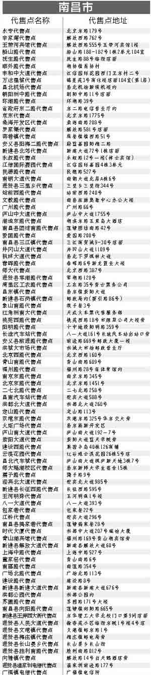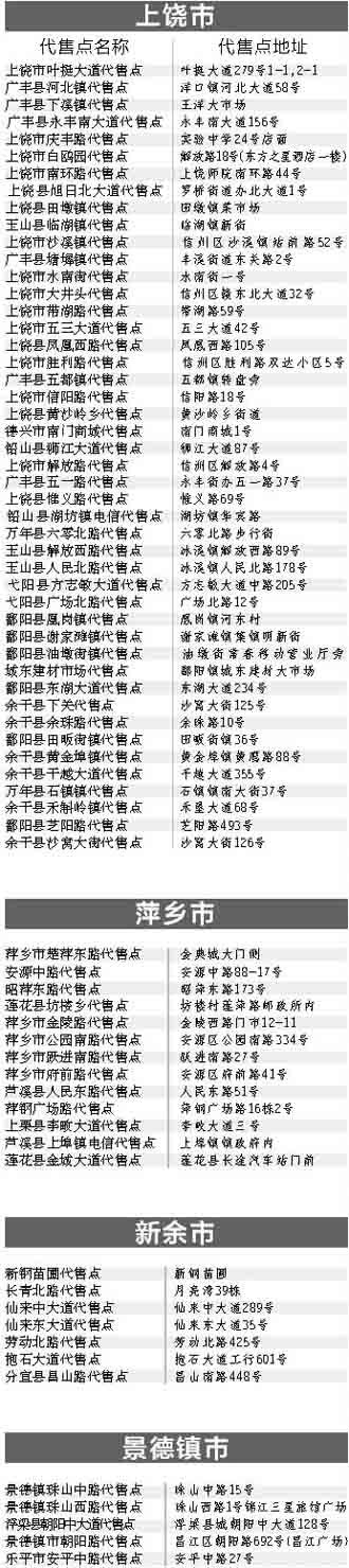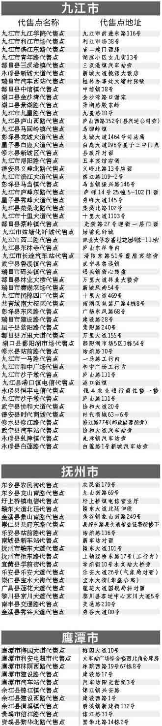 旅客可到南昌铁路局指定的代售点购买或换取火车票,代售点预售期为18天(含当天),起售时间为8∶00。