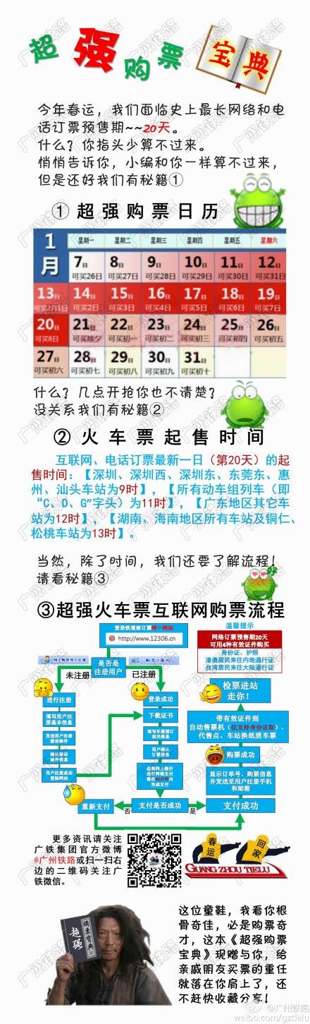 这张“牛图”称得上“宝典在手,购票不难。”一图在手便能清晰、直观地了解到今年春运全国铁路火车票的预售日期、广铁集团各车站起售时间和互联网订票操作流程。