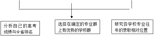 根据学业规划的指导原则,在高考志愿决策时,我们首先是选择专业,然后根据专业选择学校,选择在我们所定的专业上有办学优势的学校,最后才是根据分数在我们所选的学校群中进行确定。我们可以用流程图的方式一目了然地将各个过程展现出来。供考生及家长参考。