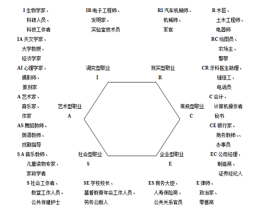 下面我们主要地介绍一下关于职业倾向测试的霍兰德教授的职业人格的六角型思想,及对不同职业的选择。